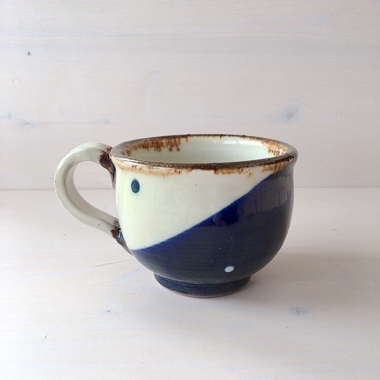 白とブルーのコントラストに小さく描かれたドットが可愛らしいカップです。