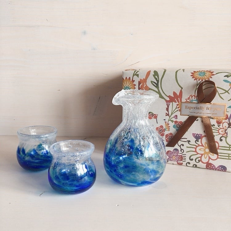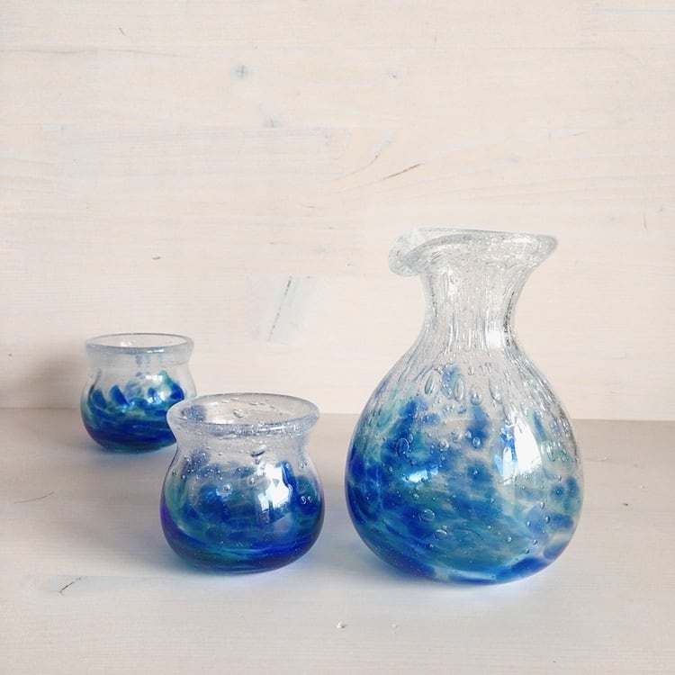 読谷村にある琉球ガラス工房雫の徳利とぐい呑みのセットです。