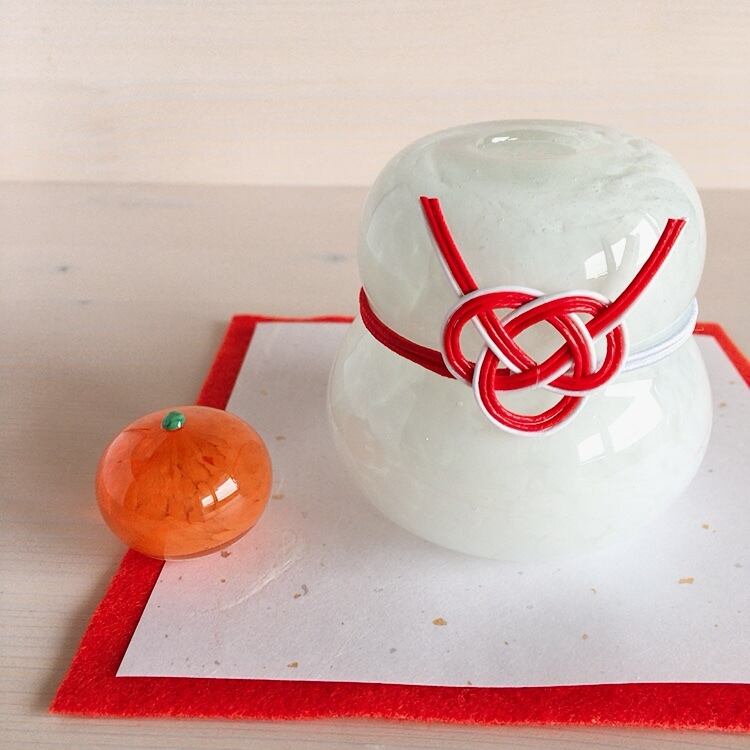 お正月が終わったら、橙(ミカン)を外してお餅の部分をひっくり返すと一輪挿しに変身。
