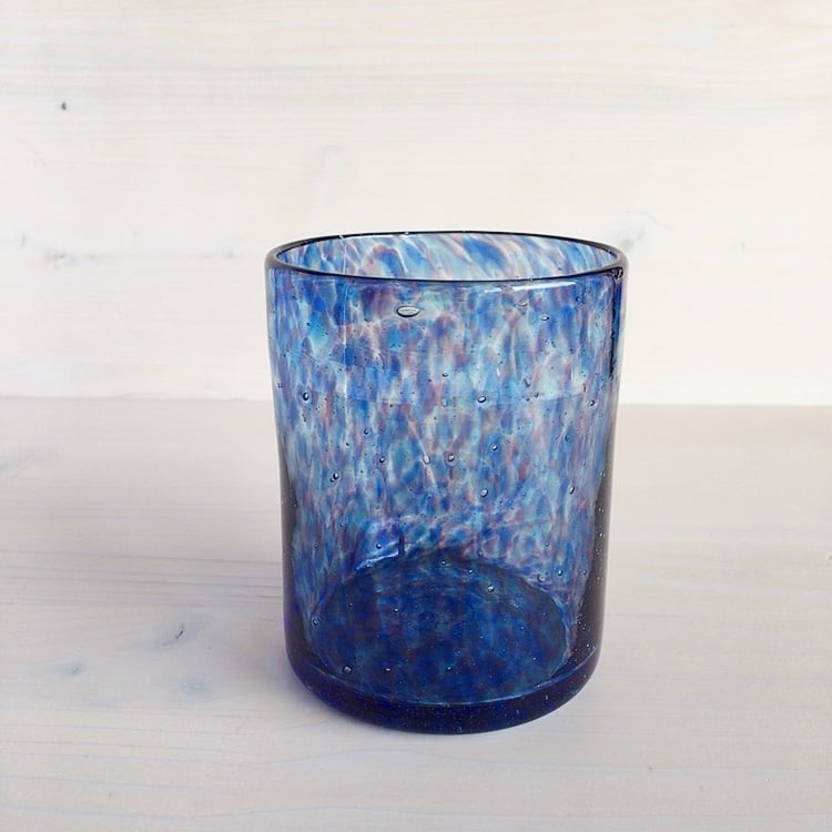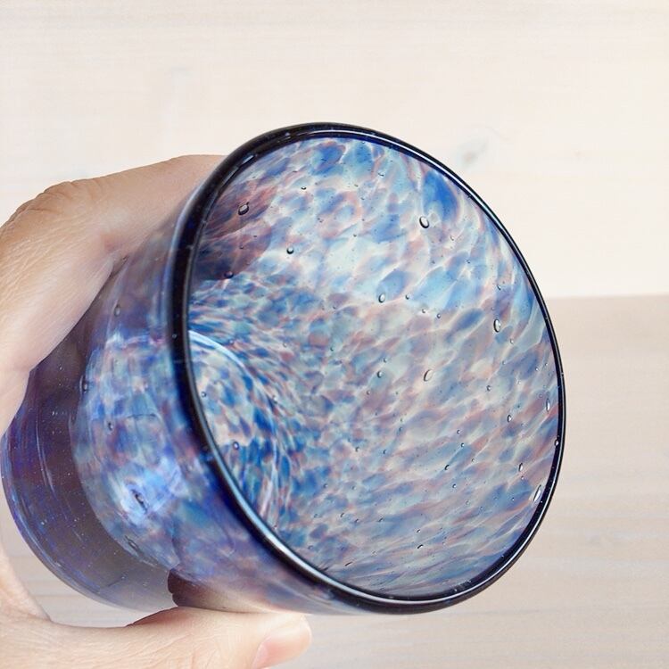 読谷村に工房を構える硝子家すずめのロックグラス、全部で4色ある水面(minamo)シリーズです。