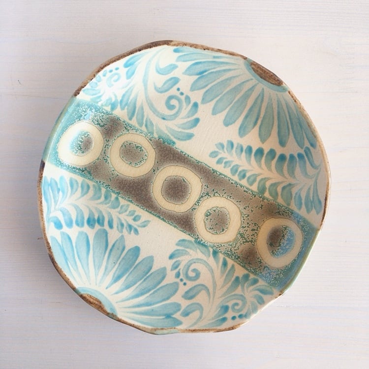 やちむんでは珍しい色使い。