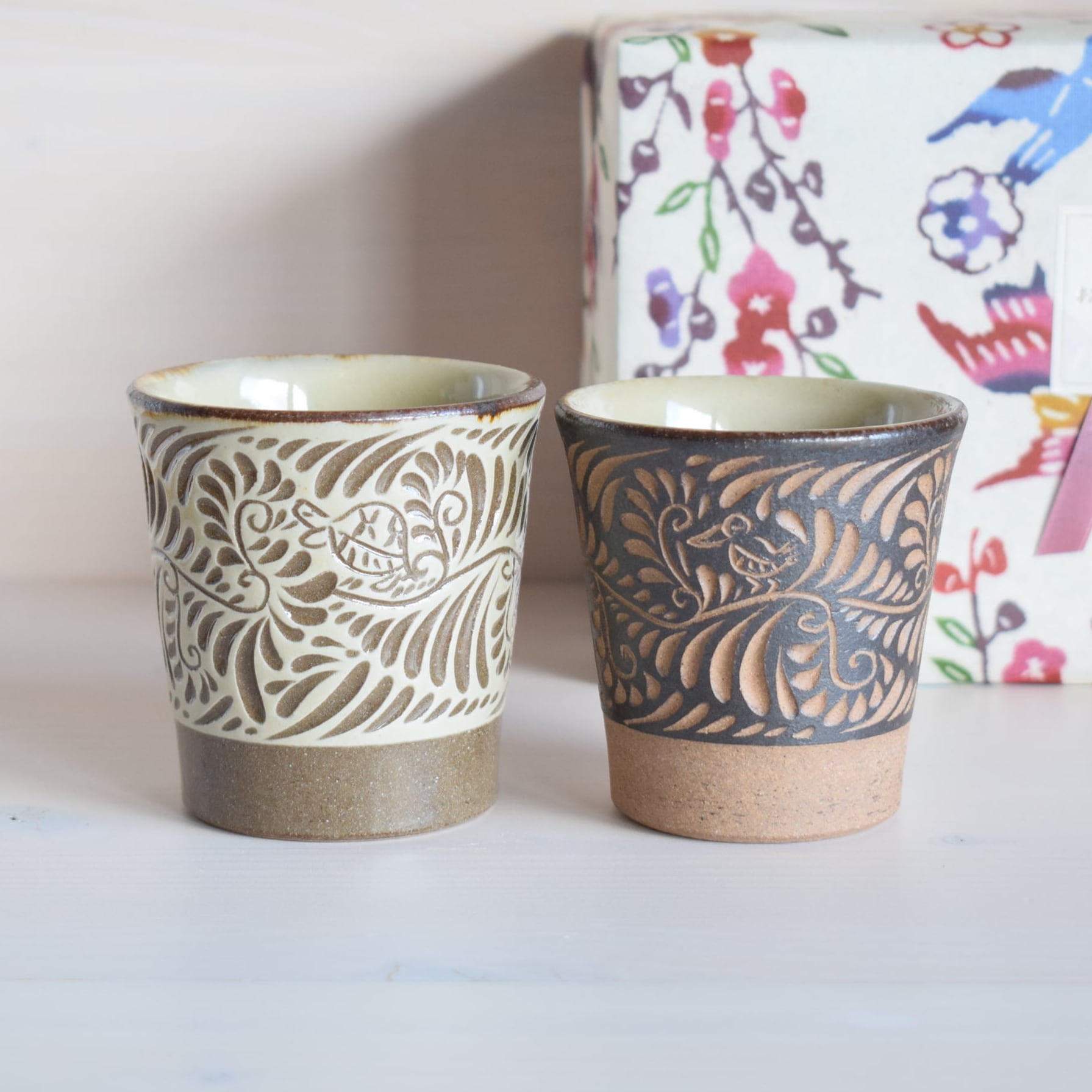 読谷村に工房を構える陶房高江洲のフリーカップを2個セットにしてギフト用にご用意しました。