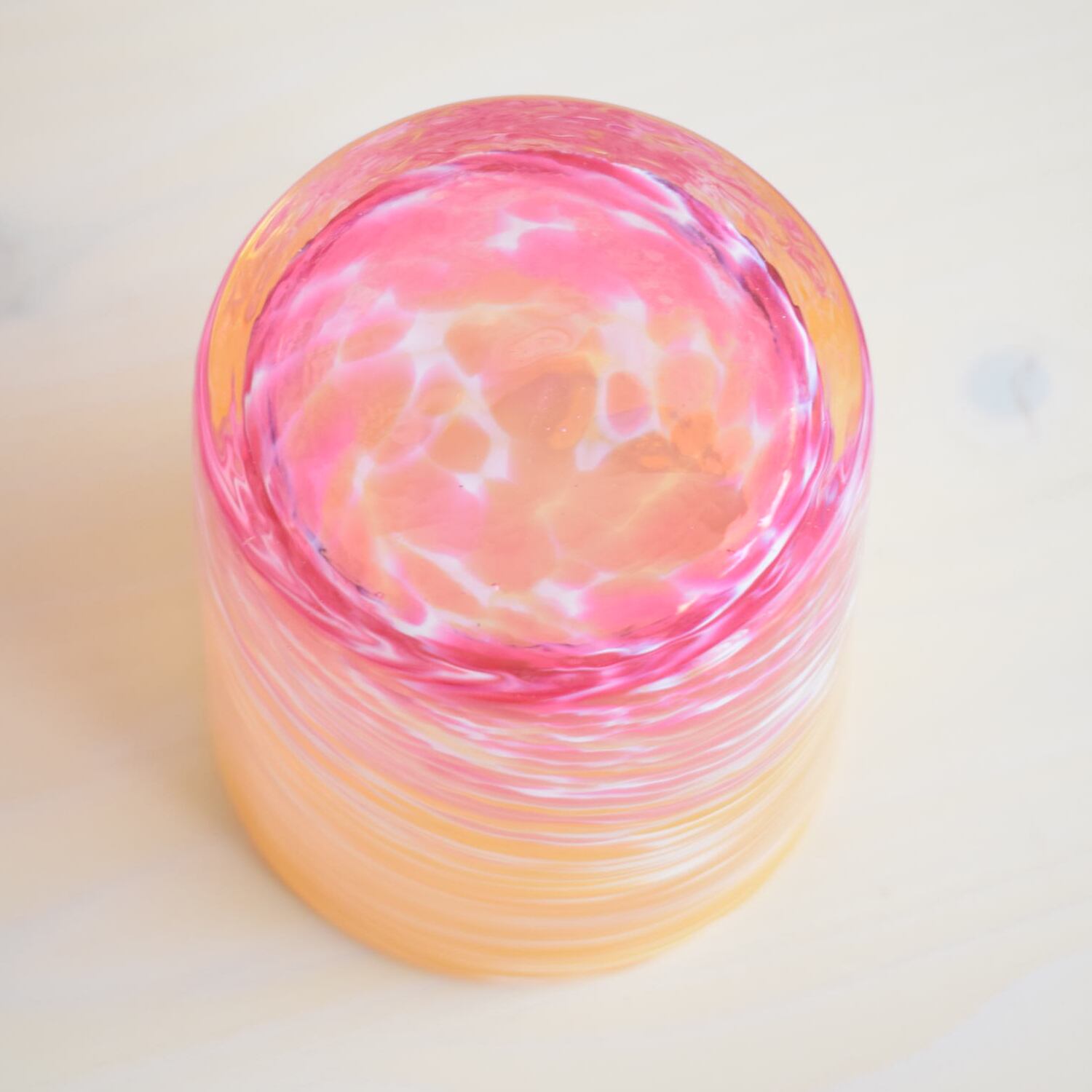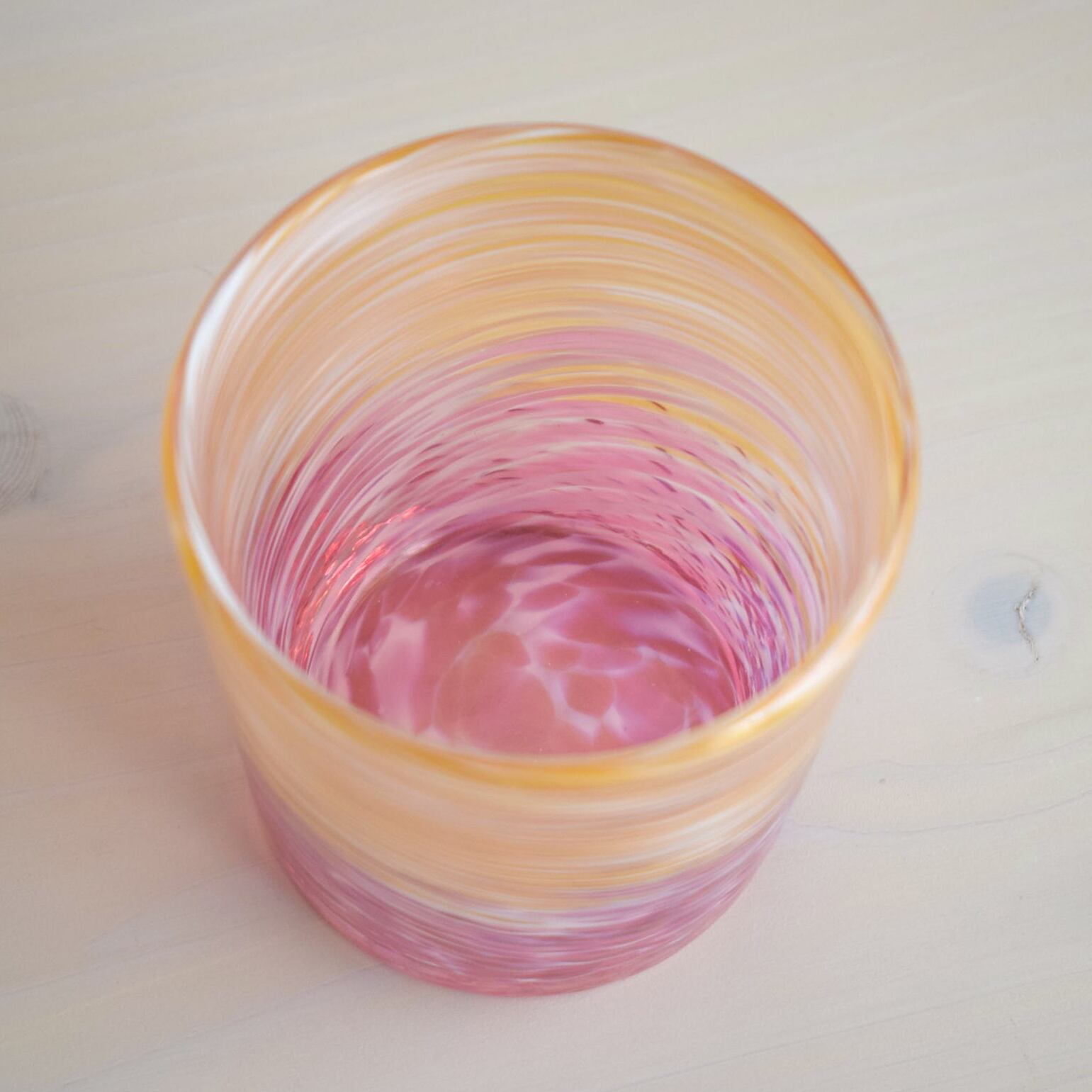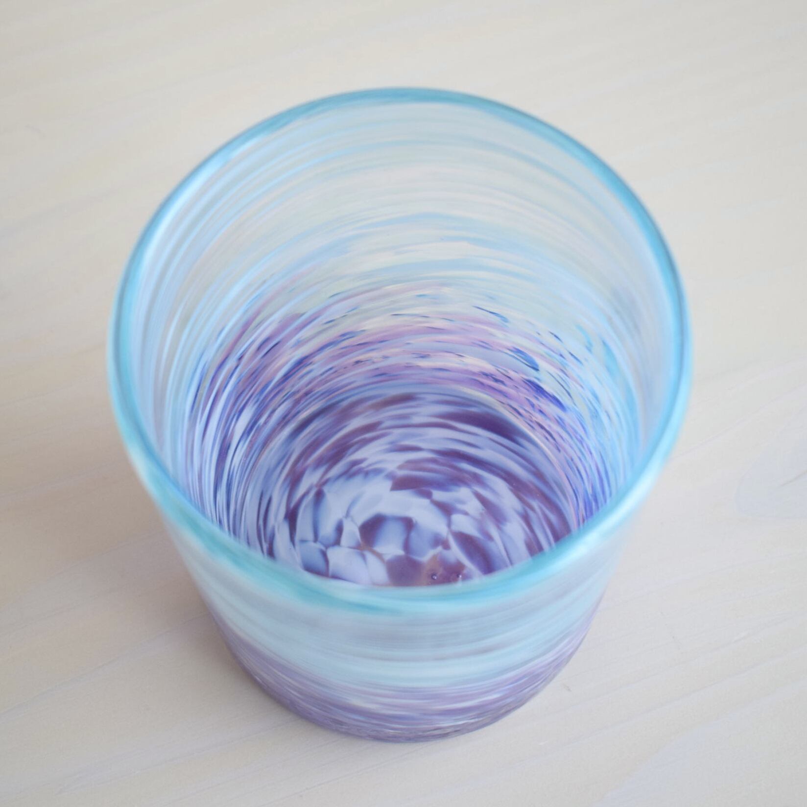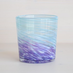 読谷村にある琉球ガラス工房 雫のロックグラス。工房から見える海の一日の様子を表現したことから「深海ロック」という名前がついています。