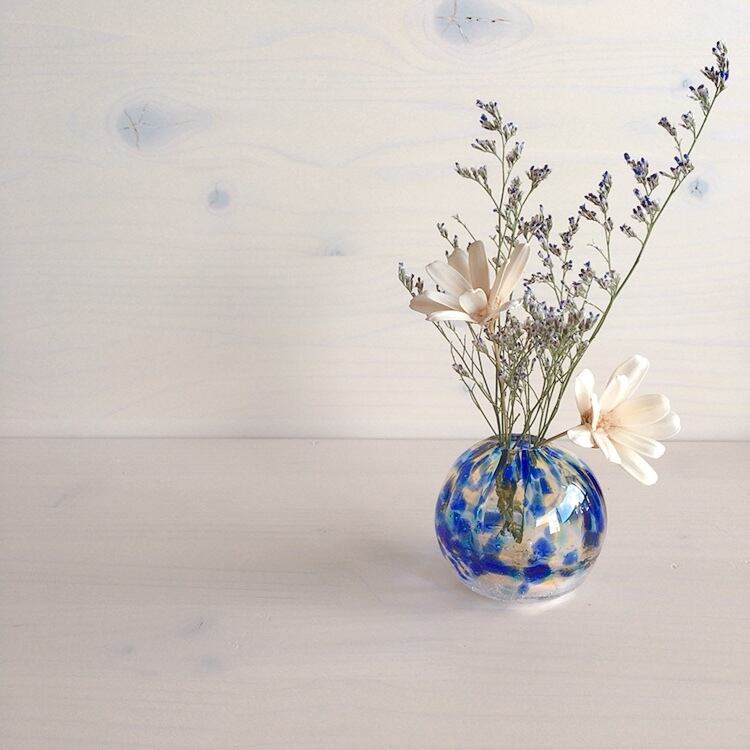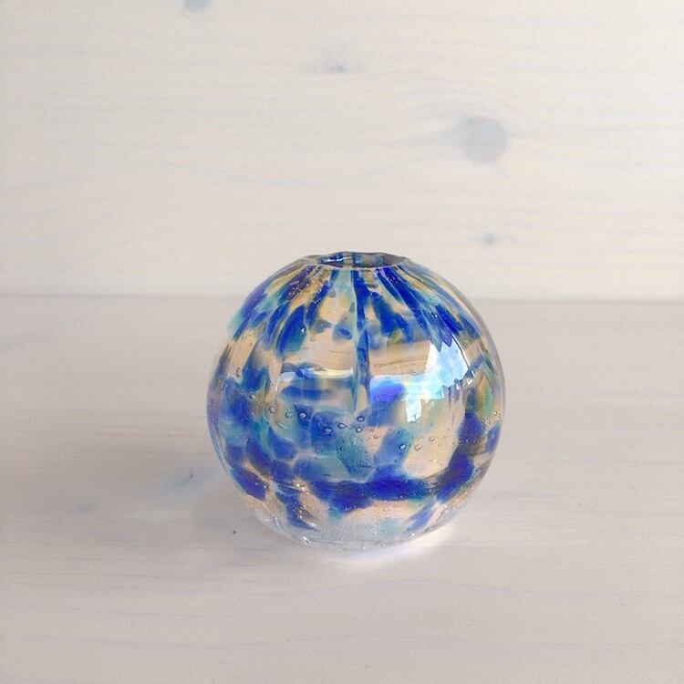 読谷村にある琉球ガラス工房 雫の一輪挿しです。