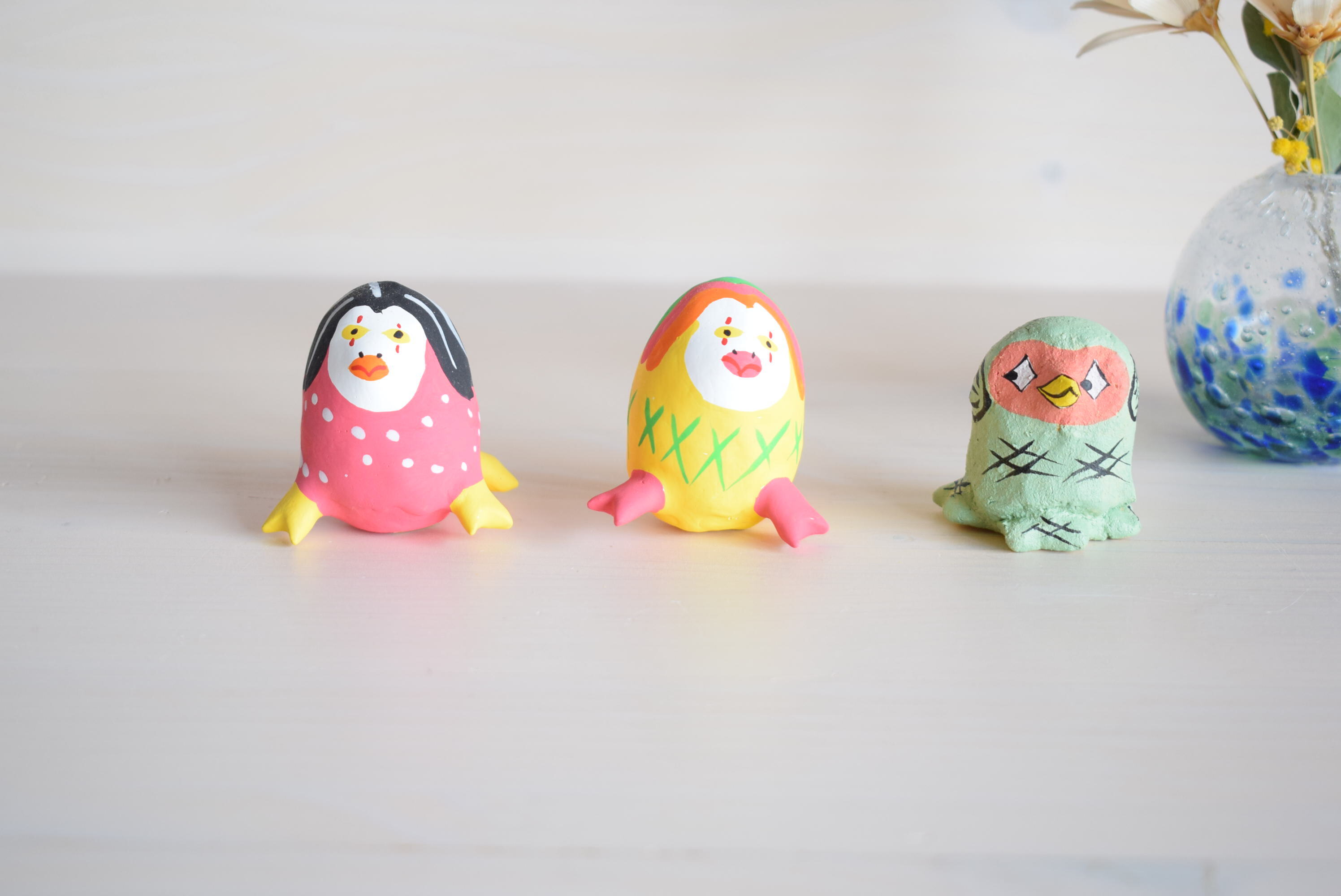 1体4~4.5cmの立方サイズです。玄関や出窓、カウンターなどちょっとしたスペースに飾りやすく、お気に入りのコースターの上に飾っても素敵です。