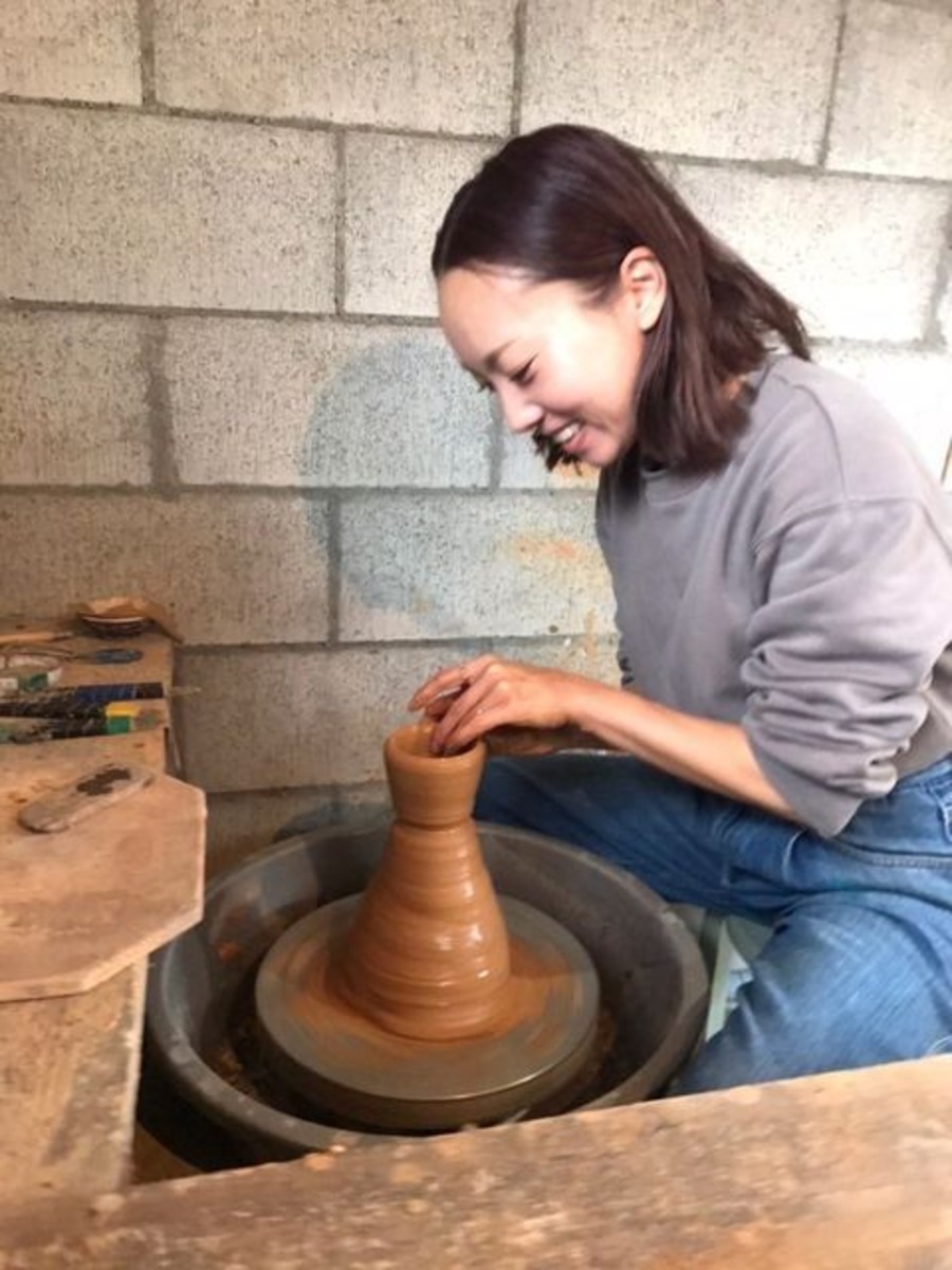 壺屋焼 陶眞窯で4年間修業後、2021年7月に独立した仲眞美帆さん。