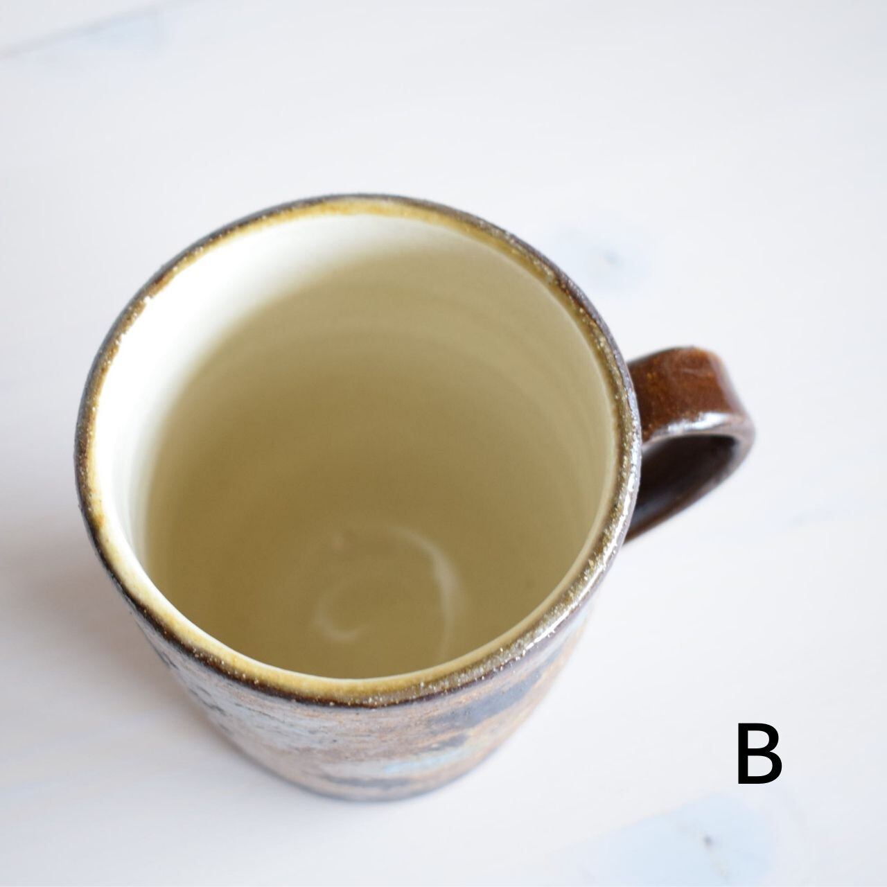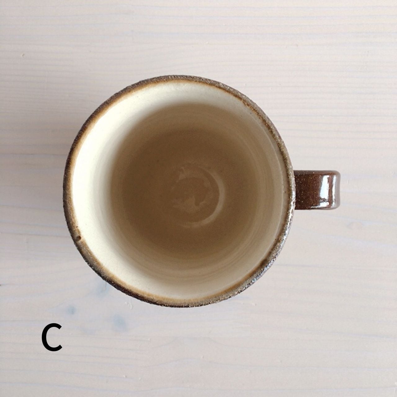こちらは茶色のグラデーションがカッコいいカップです。同じデザインですが、色味が異なると全く違った雰囲気に。内側はクリーム色なので、飲み物の色が楽しめていいですね。