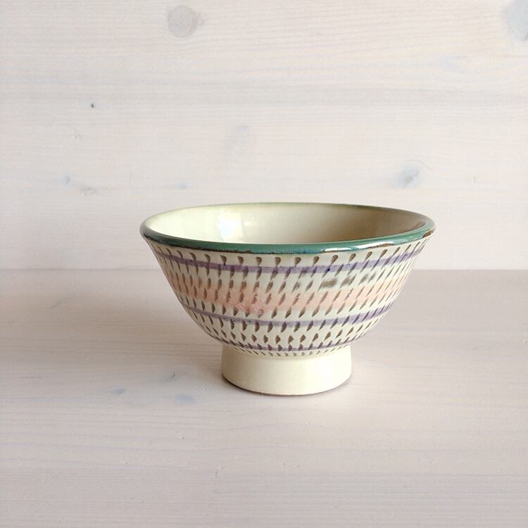 壷屋焼 幸陶器 飛びカンナピンク お茶碗