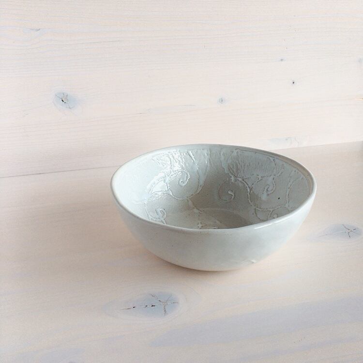 眞正陶房 シリアルボウル(約15.5cm)アラベスク 白