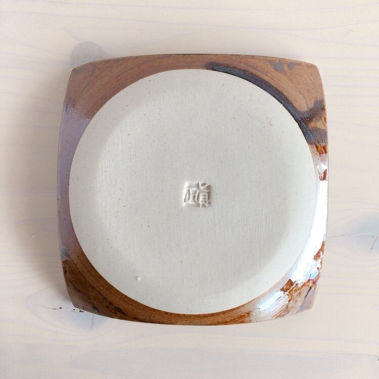 眞正陶房の角皿(約15cm四方)です。春にぴったりの明るい色合いに心が弾みます。取り皿としてはもちろん、ケーキ皿としてお使いいただいても素敵です。表部分もマットな手触りの器です。