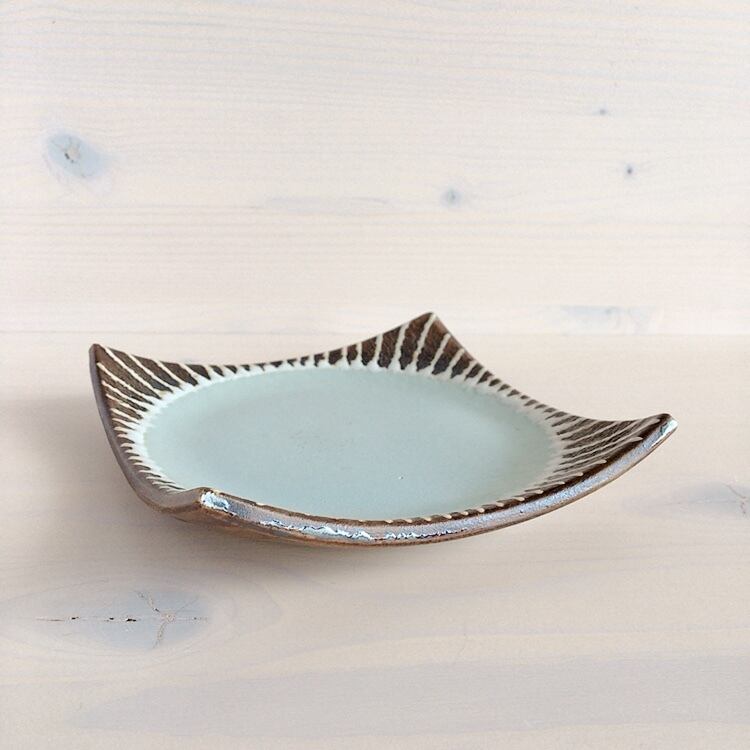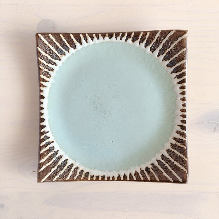 眞正陶房 角皿(約15cm)ミントブルー