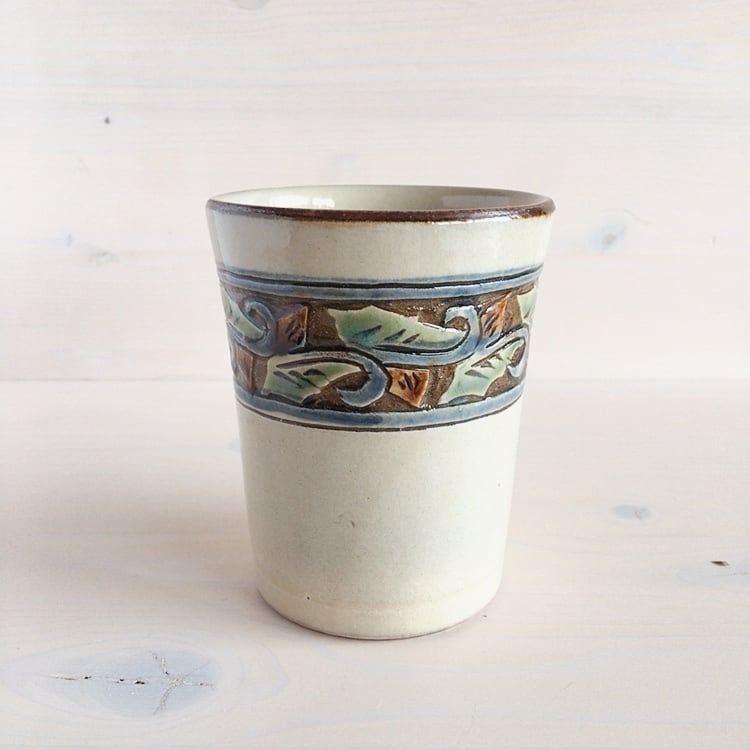 陶工房高江洲 マグカップ(ストレート) 唐草掻き落とし緑釉薬