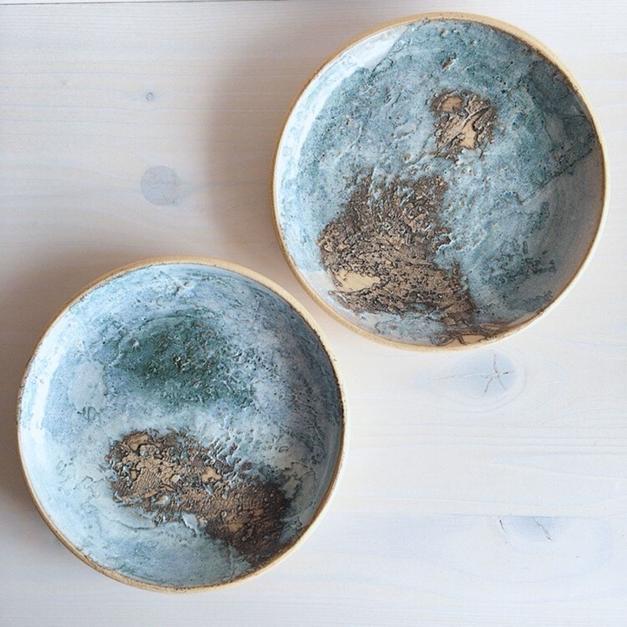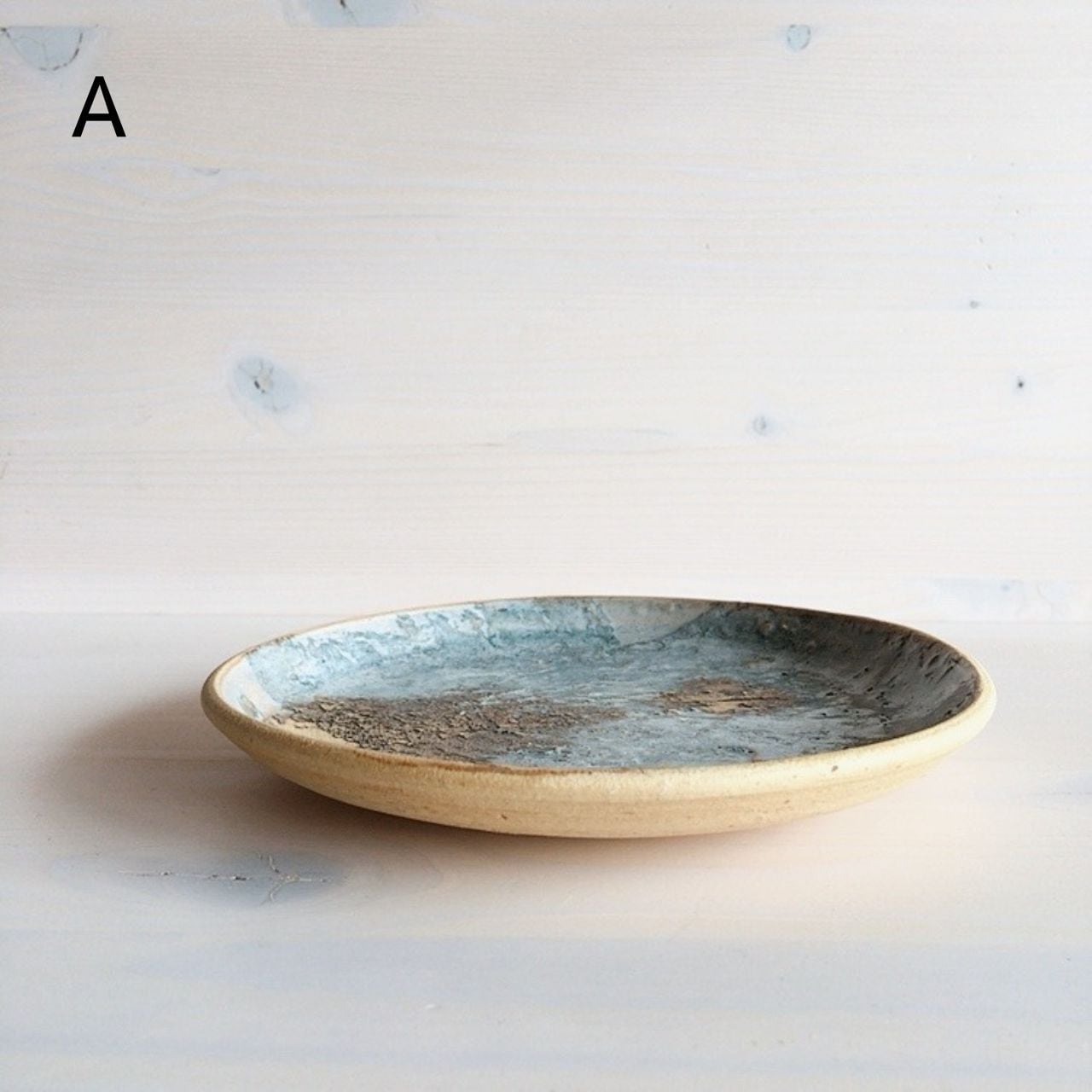 読谷村に工房を構えるまるか陶工房のカップ。ごつごつとした質感、儚い青のグラデーションは、無機質なようでいて、どこか温かみがあり、とても存在感のある器です。