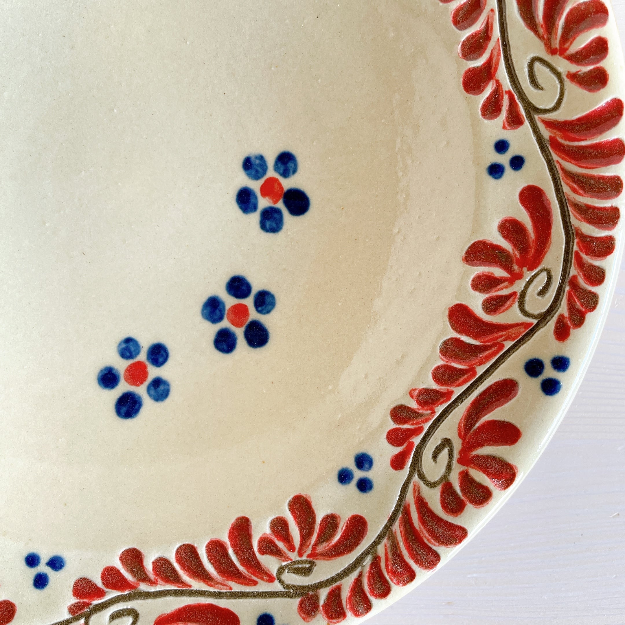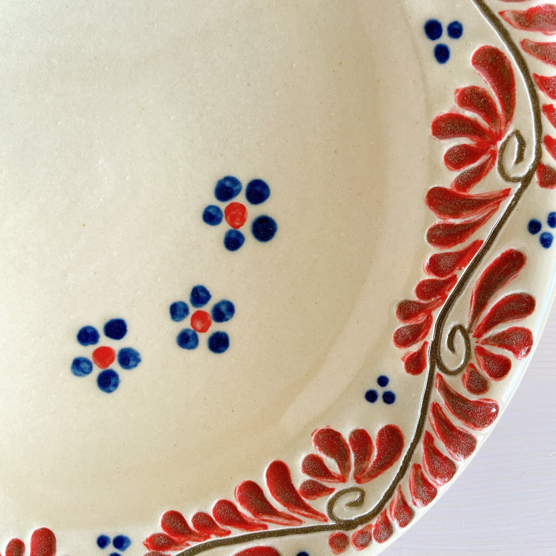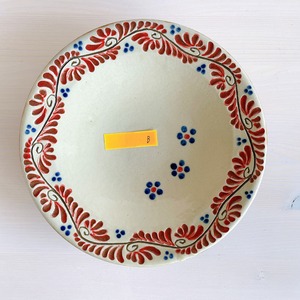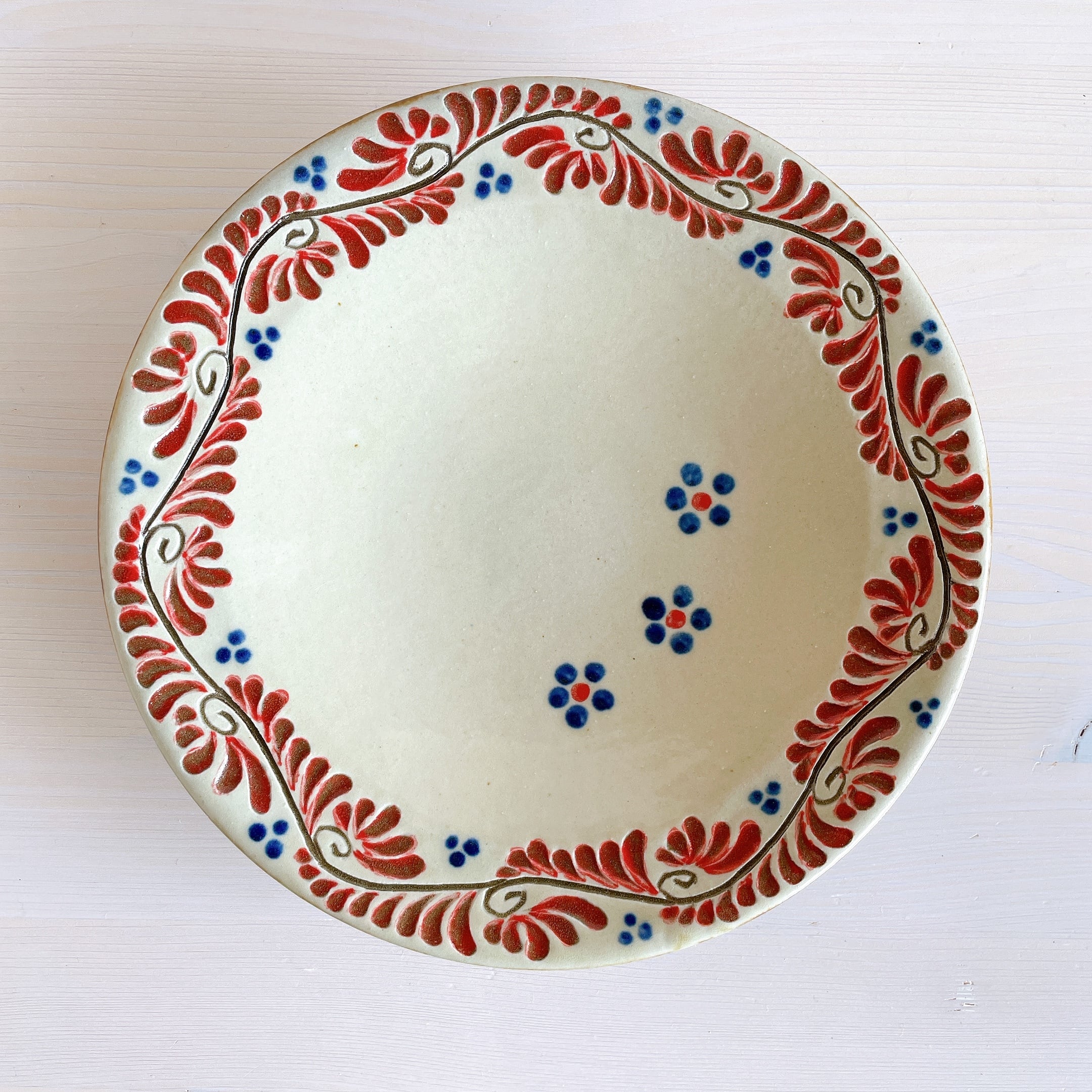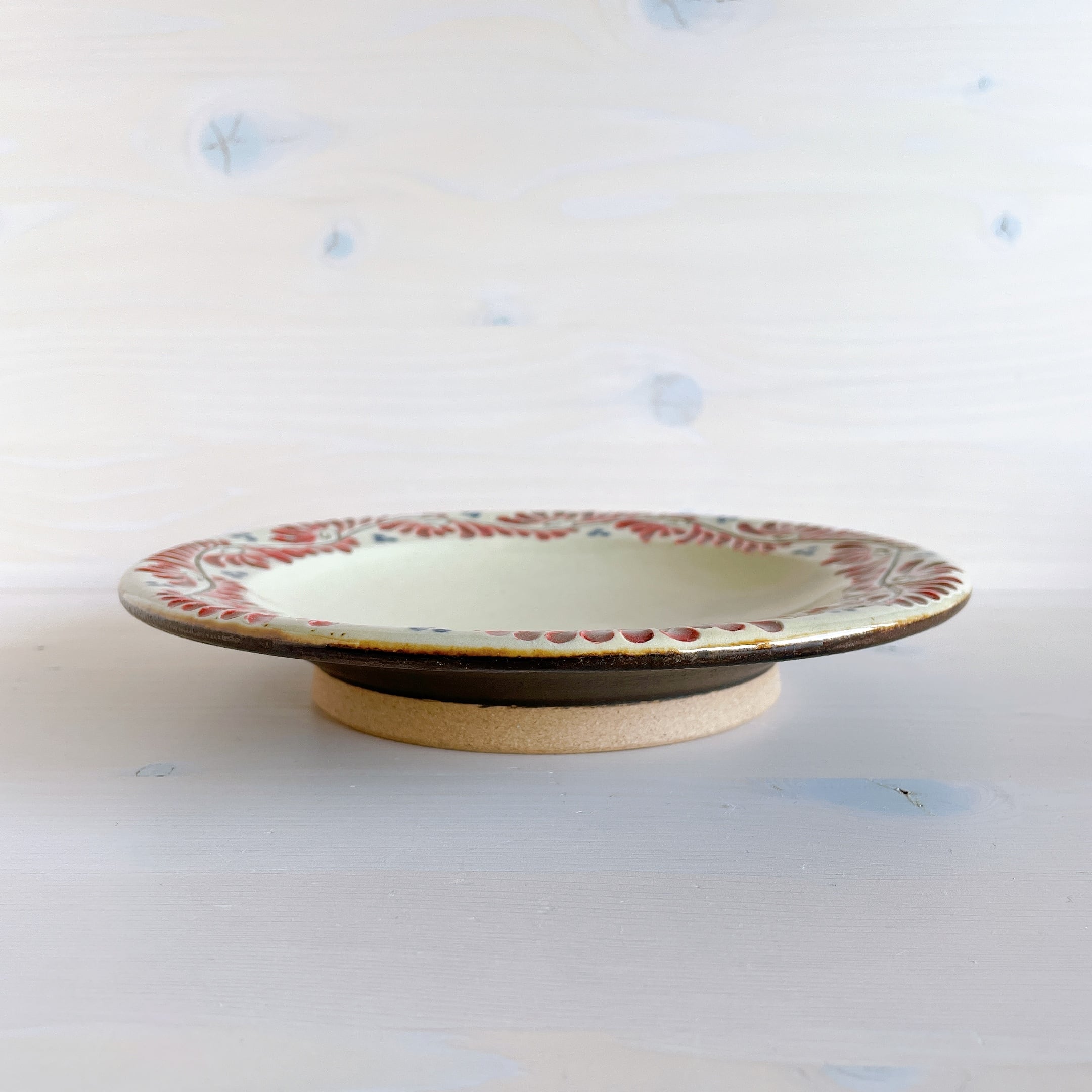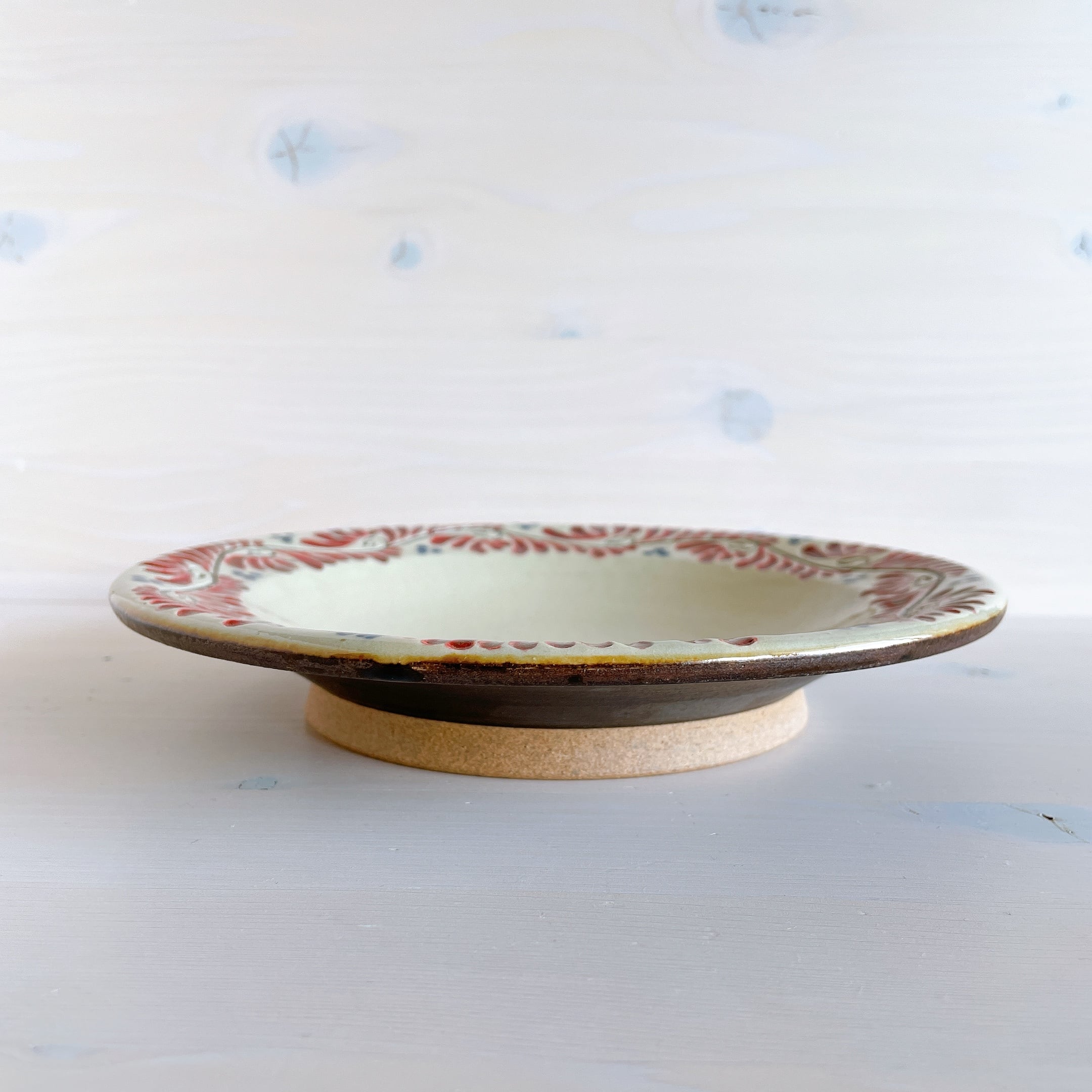 陶房高江洲 7寸リム皿 唐草(ゆったり) 赤