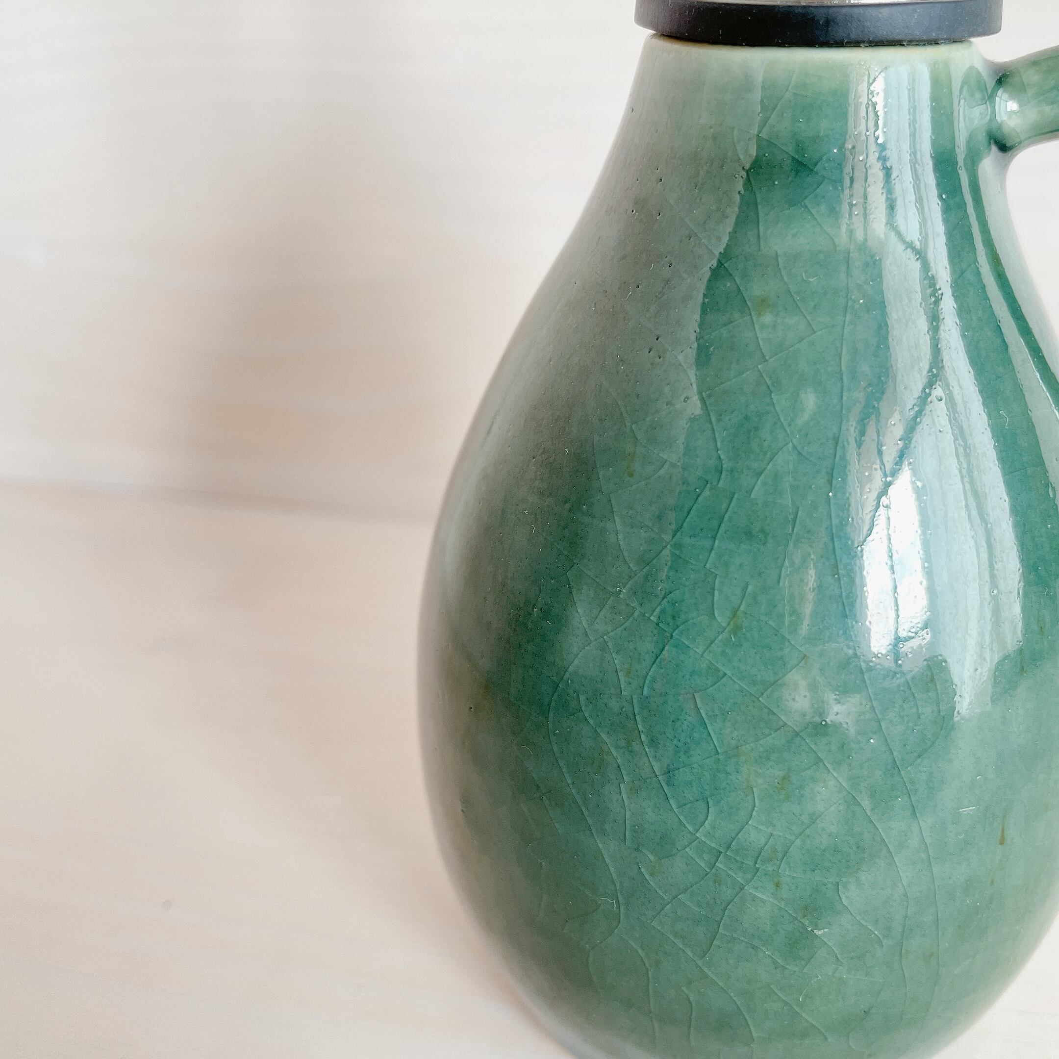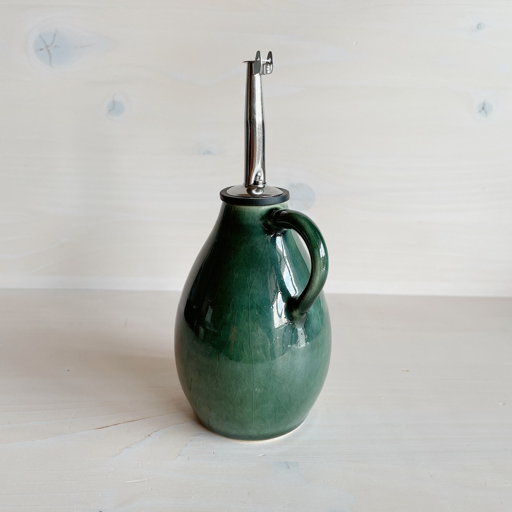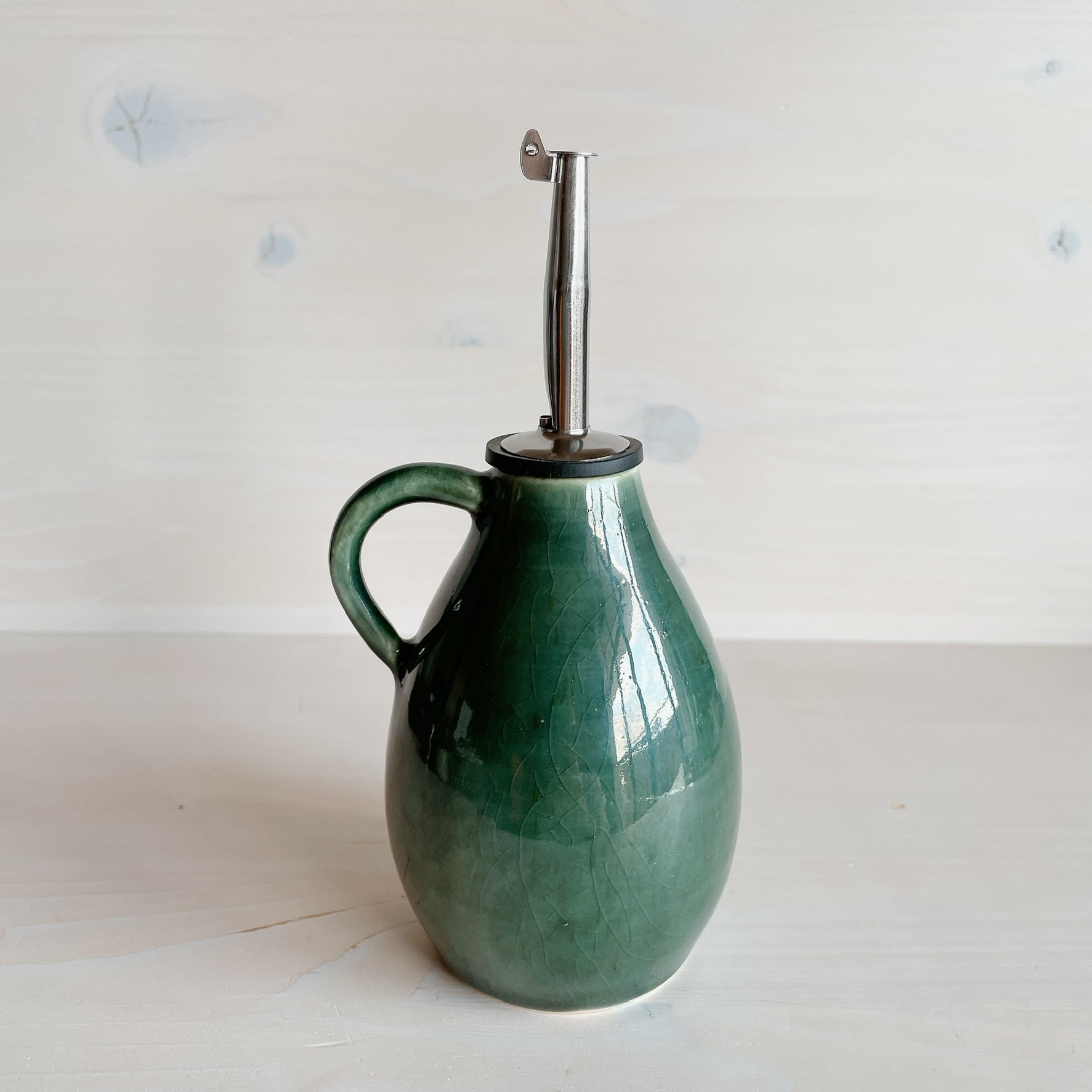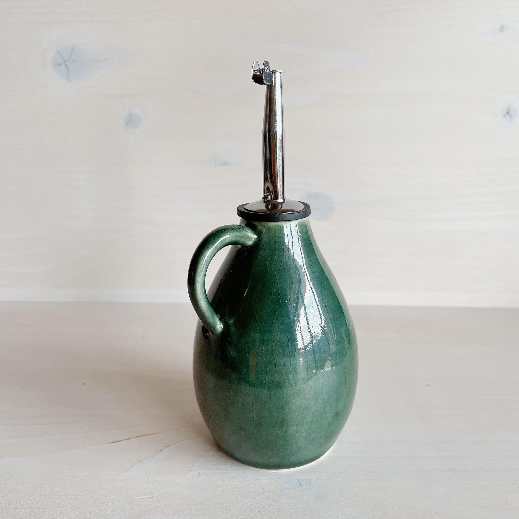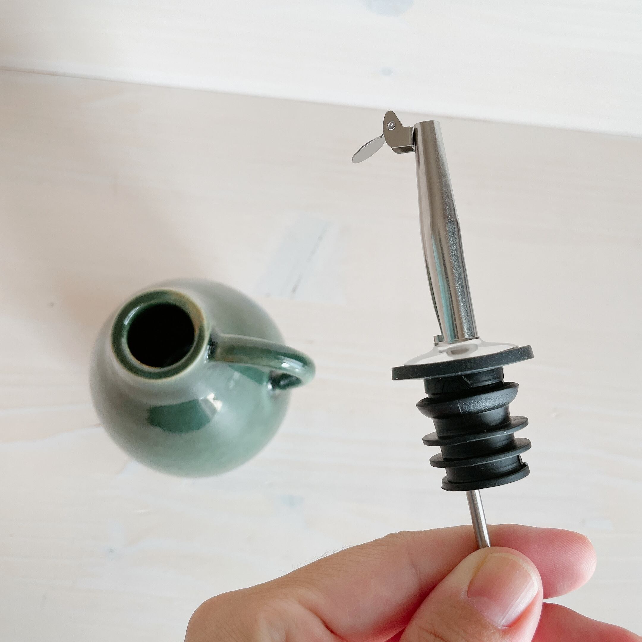 陶器のオイルポットは遮光性が高いため、紫外線や温度の変化で風味が落ちるオリーブオイルの保管にオススメです。ポットを傾けると小さな蓋がパカっと開くので、使いやすさも抜群。キッチンに出しておいてもサマになるポットです。